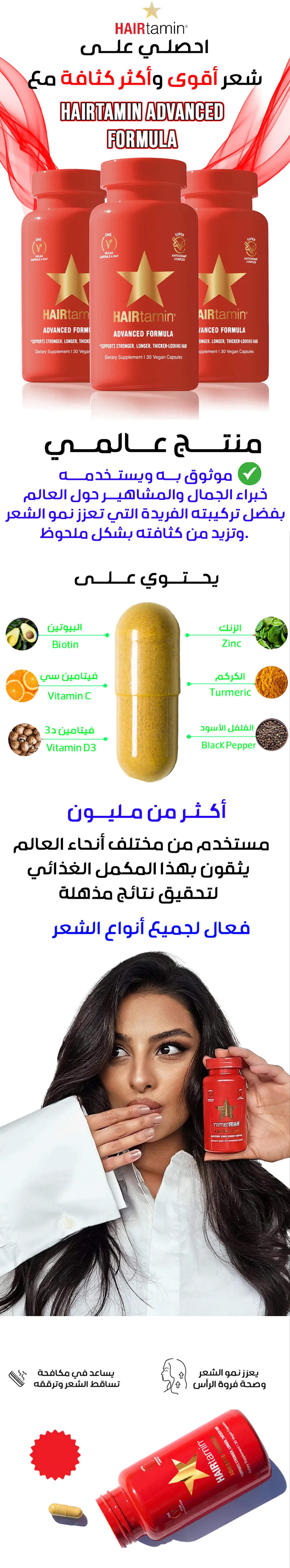 هو الحل الأمثل لكِ. تقدم لكِ هذه الحبوب تركيبة فريدة مليئة بالفيتامينات والمعادن التي تعزز نمو الشعر وتقويته. سواء كنتِ ترغبين في زيادة كثافة شعركِ أو تحسين حالته العامة،